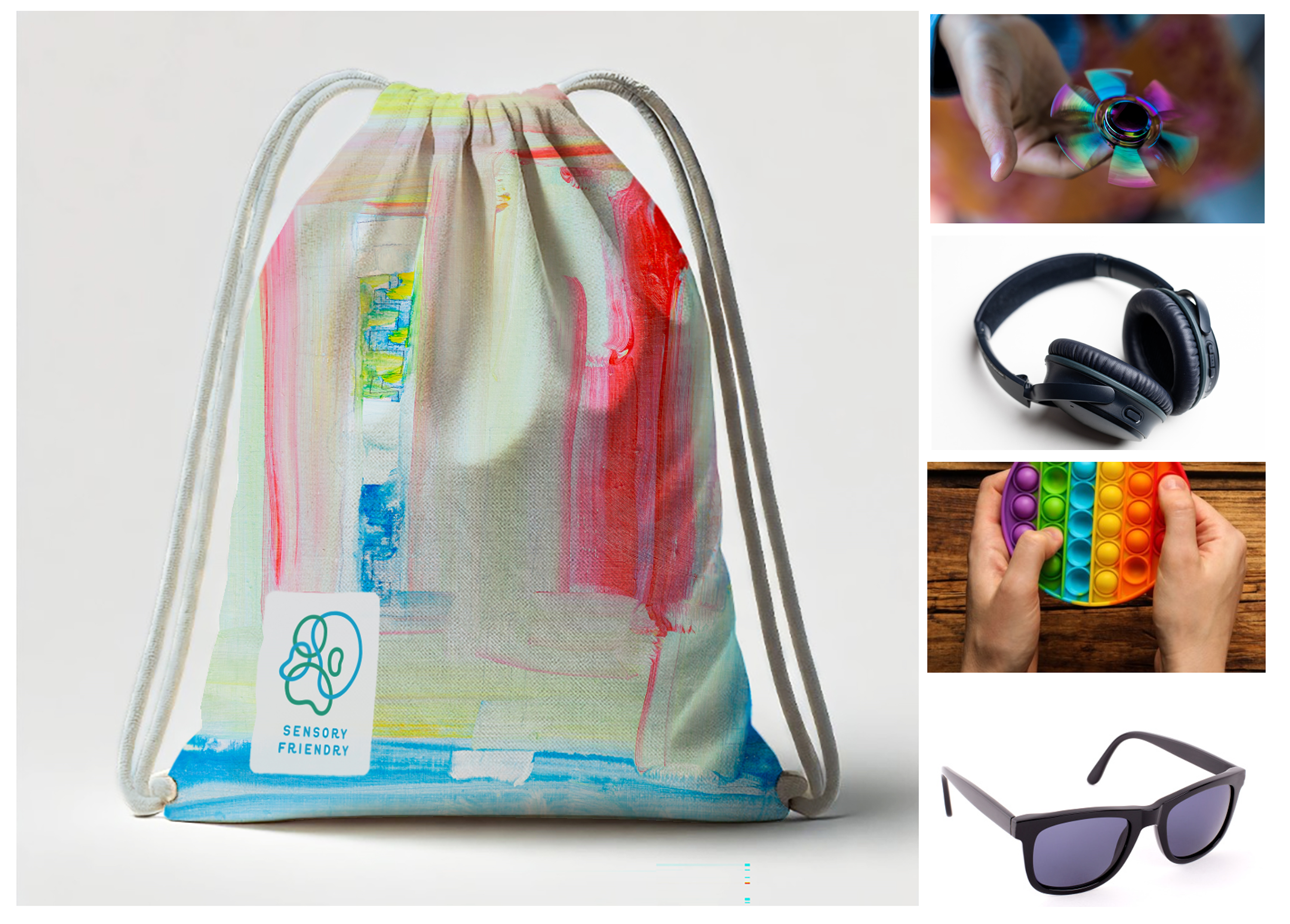 センサリーバッグは、「六本木アートナイト」の鑑賞にあたり、大きな音や光の点滅に不安がある方に対して、イヤーマフ、サングラス、センサリートイなどを入れたバッグをレンタルするサービスとして実施されました。
