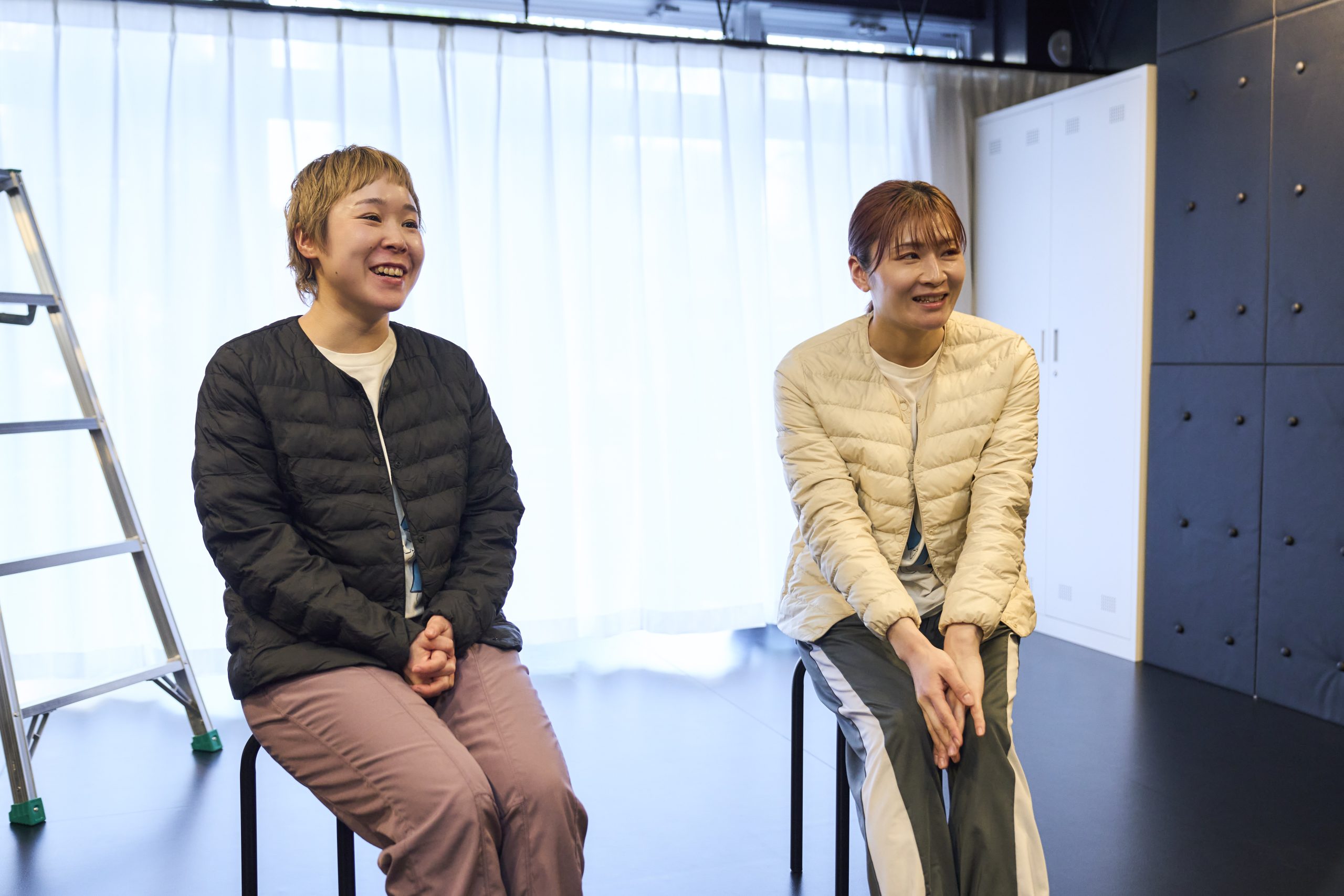 「START Box白鬚」の「稽古場」を利用しているVon・noズは、上村有紀さんと久保佳絵さんによる2人組のダンスユニット。3月に予定されている新作公演に向けた稽古・リサーチ・宣伝用映像撮影・打合せの場として活用しているそう。
