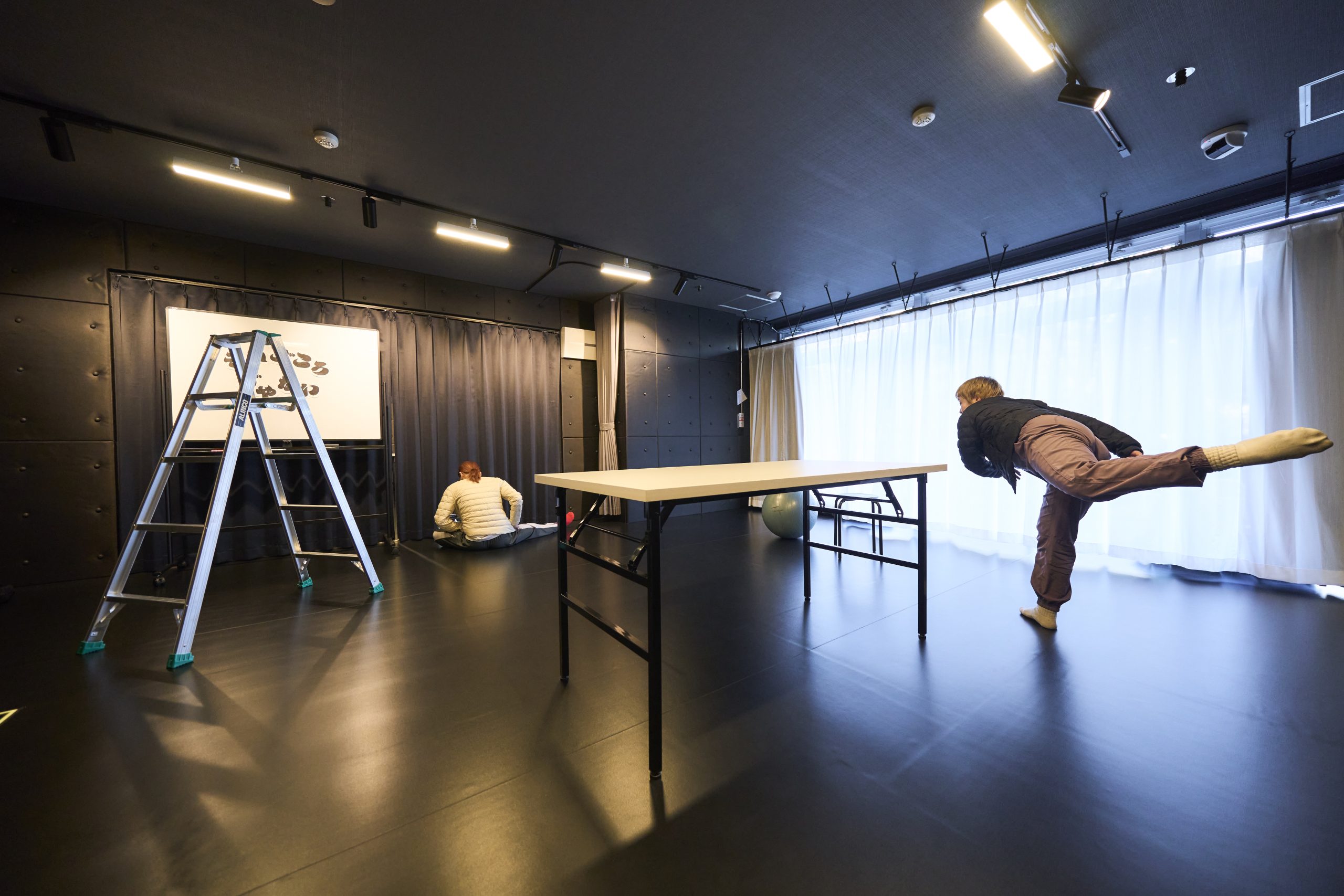 久保佳絵 私たちの創作スタイルでは、実際に身体を動かすこと以外に、リサーチやミーティングをする時間もかなり必要なので、個室の備品としてホワイトボードや机・椅子も役立ちました。「START Box 白鬚」は、公演直前の通し稽古というよりは、稽古やその前段階の実験を繰り返しながらピースをつくっていくプロセスに、とても適した空間だと感じています。